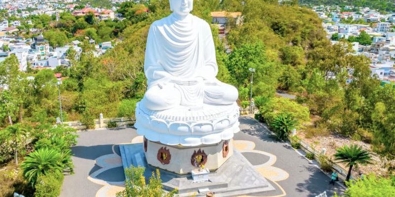Nổi bật nhất tại chùa là tượng Phật Trắng Kim Thân cao hơn 24m, được đặt trên đỉnh đồi Trại Thủy. Đứng từ đây, bạn có thể thu trọn cả thị thành biển vào tầm mắt – một cảm giác khôn cùng thanh tịnh và thanh tú.